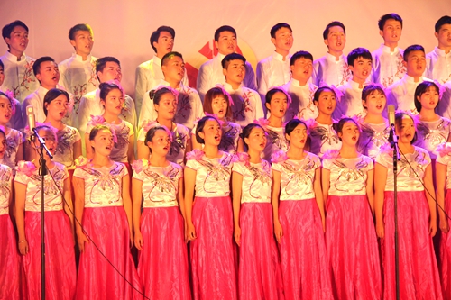 艺术系合唱队演唱了《映山红》、《我的祖国》,他们用嘹亮的歌声唤起了全场观众对往昔峥嵘岁月的回忆。
