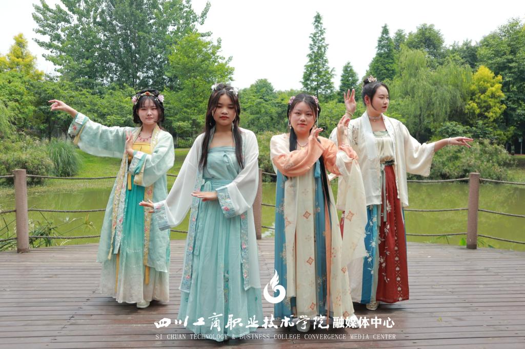 “花车”经过学生宿舍楼、综合实训楼、校园南门后来到了最后一站——樱语林,由芄兰汉文社带来的古典舞《棠梨煎雪》柔情上演,表演同学精致的妆容、美丽的服饰和柔美的舞姿让在场观众目不暇接。