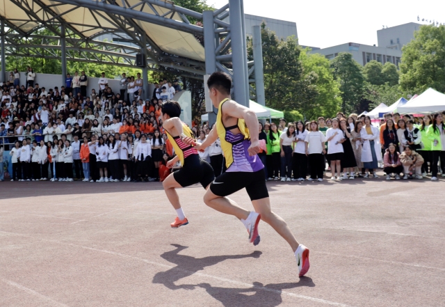 单人项目也是喜报频传。休体22313班杜祝友同学在男子跳高比赛中以1米80的成绩打破校记录;休体22313班曹正杨同学在男子200米预赛中以23秒39的成绩打破了5年前的校纪录;休体22314班董敏同学在女子200米比赛中以29秒19的成绩打破了沉寂19年的校纪录。